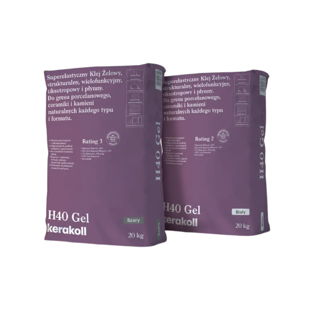 H40 Gel to rewolucyjny, strukturalny klej żelowy wykonany w innowacyjnej technologii Kerakoll. Dzięki zastosowaniu geospoiwa, produkt charakteryzuje się wyjątkową obrabialnością i najwyższymi parametrami wytrzymałościowymi. Jest to idealne rozwiązanie dla profesjonalistów, którzy szukają niezawodności przy montażu każdego rodzaju płytek i kamienia naturalnego – nawet w najbardziej ekstremalnych warunkach.